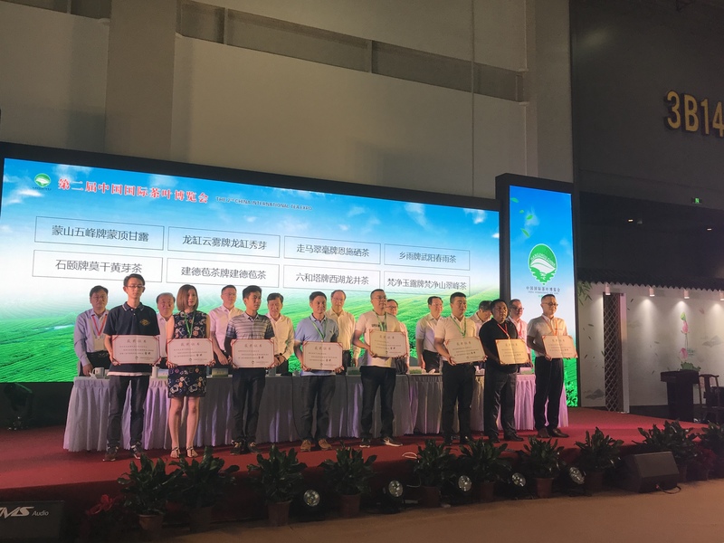 继2017年第一届中国国际茶叶博览会“蒙顶山茶”公用区域品牌荣获“全国十大茶叶品牌”之后,2018年5月19日,在第二届中国国际茶叶博览会第八届国际武林斗茶大会上,四川蒙顶山茶业有限公司“蒙山五峰牌蒙顶甘露”在全国送选的茶叶产品中脱颖而出,荣获第二届中国国际茶叶博览会金奖,并选定为第二届中国国际茶叶博览会品鉴用茶。