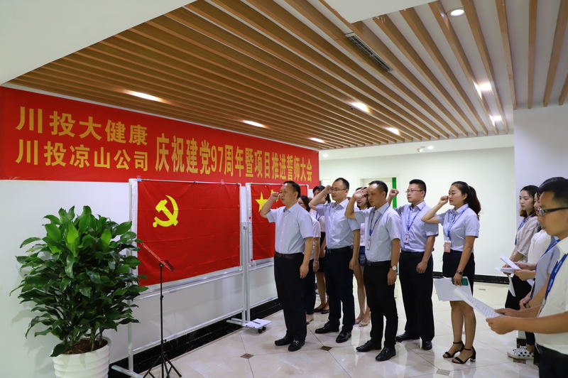为庆祝中国共产党成立97周年,深入贯彻习近平总书记四川讲话精神,激励公司全体党员职工廉洁高效、躬身奋斗,以项目落实落地的成果检验学习成效。6月30日上午,川投大健康与川投凉山公司联合举行了庆祝建党97周年暨项目推进誓师大会。
