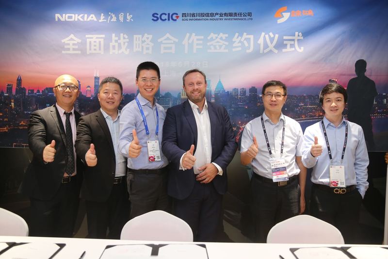 6月27日至29日,为期三天的“2018年世界移动大会-上海(MWCS18)”在上海新国际博览中心隆重举行。川投信息产业公司与上海诺基亚贝尔股份有限公司(以下简称“诺基亚贝尔”)等公司经过多轮磋商谈判,在本次大会上正式签署战略合作协议。川投信息产业公司财务总监蔡昌银,诺基亚集团副总裁Chris Johnson、诺基亚贝尔执行副总裁金剑出席签约仪式。