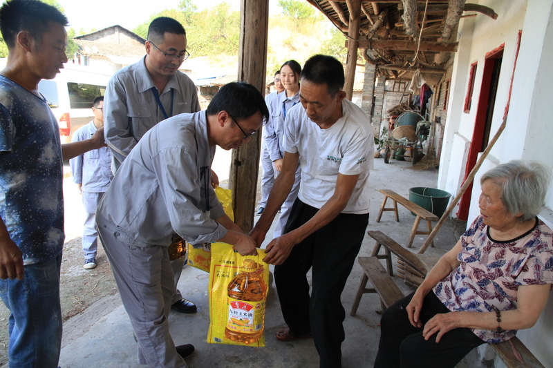 8月28日,气电党委副书记姚欣、总工程师蔡宏带领公司部分党员干部来到郭天珍家中进行慰问,送去大米和食用油。红花村驻村第一书记张云向大家介绍了建档立卡贫困户郭天珍的家庭情况:老党员郭天珍已八十多岁,由于脑中风造成不能行走,其子何刚香有智力缺陷,只能靠务农及养殖少量家禽为生,孙女何欣尚在读技校,其在校每周生活费仅60元,家庭目前只有郭天珍一人享受低保,没有固定经济来源,生活非常困苦。