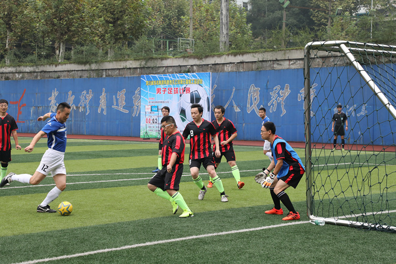 各代表队通过抽签分成四组进行小组单循环比赛,每组前两名进入第二轮交叉赛。16日上午共进行了三场比赛,分别是佳友物业队对阵机关一队、川南发电队对阵川投信产队、田湾河队对阵嘉阳集团队。比赛激烈精彩,看点多多,首场比赛在佳友物友和机关一队之间展开,双方队员在裁判的引领下进行了简单的入场仪式后,由嘉阳集团总经理范勤英为比赛开球。开场双方队员就展开了激烈的博奕,跑位积极迅速,抢断果敢机智,机关一队在两轮之后抢断成功冲入禁区,77号率先踢入一球破门得分,随后,机关一队控制了场上节奏,队员们也渐入佳境上演帽子戏法,再入3球,4:0旗开得胜。在卫冕冠军嘉阳集团对田湾河的比赛中,上半场两队一直处于拉锯战的节奏,嘉阳集团队队员发挥欠佳,进攻乏力,而田湾河队防守严密,步步紧逼,屡屡进攻发力;离终场一分钟,嘉阳集团队主力前锋周添雨门前头球攻入一球打破场上僵局,田湾河队虽想挽回败局,组织了两轮较有力的进攻,无奈与进球无缘,嘉阳集团足球队以1:0险胜对手。