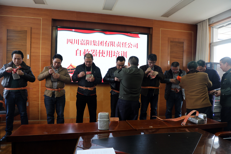 近日,嘉阳集团自救器使用培训在三楼视频会议室开展,嘉阳集团经营班子成员进行了集中学习使用和佩戴。