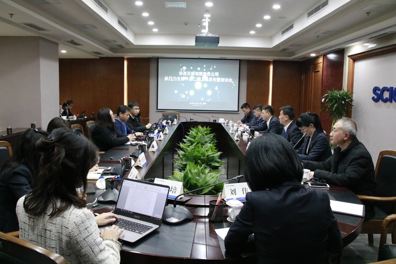 2018年12月12日下午,华西牙科有限责任公司召开华西牙科执行力支撑平台二期上线发布暨培训会,华西牙科成为米兰(中国)下属公司中第一家上线发布使用新平台的公司。华西牙科副总经理罗云主持会议。