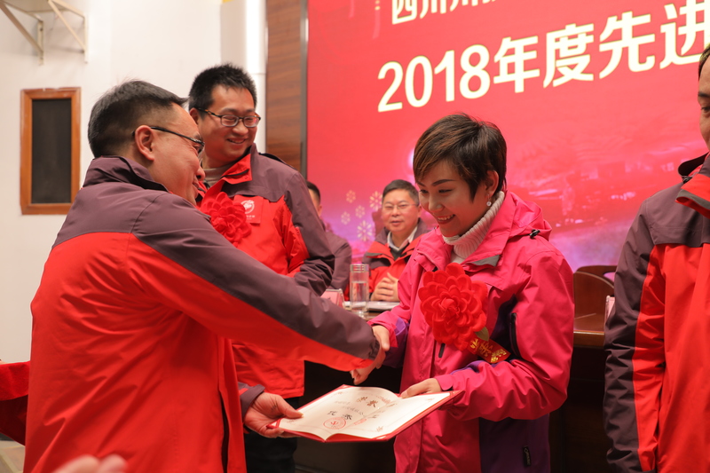 川投峨旅党委书记、董事长杜勤作了题为《鼓足干劲争上游 砥砺前行再出发》的重要讲话。最后,川投峨旅总经理张多和党委书记、董事长杜勤分别代表经营班子与代表党总支及董事会向全体职工致以最诚挚的新春祝福,大会还对2018年公司先进个人进行了颁奖。