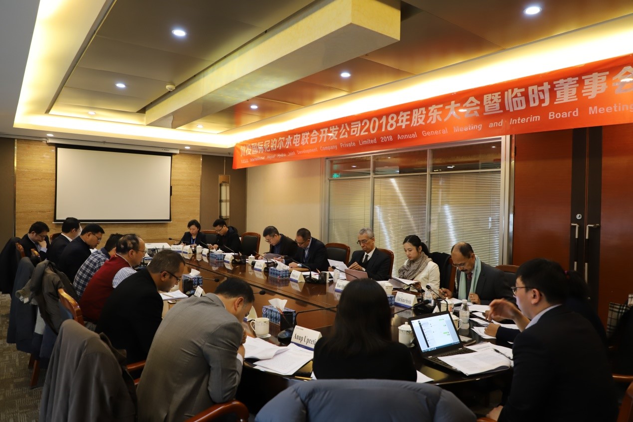 合资公司董事长廖彬主持会议,并代表董事会向各股东单位对项目推进的支持和帮助表示了忠心的感谢。根据议程安排,合资公司总经理卢建奎首先向大会报告了公司2018年的工作成果及存在问题,并提出了2019年工作目标。股东单位充分肯定了董事会和经营班子过去一年取得的成绩和付出的努力,并提出了下一步的工作要求。其次,按照尼泊尔现行公司法及《公司章程》的有关规定,会议通过了合资公司上一尼泊尔财年年报和审计报告,并任命了公司下一尼泊尔财年的法定外部审计机构。