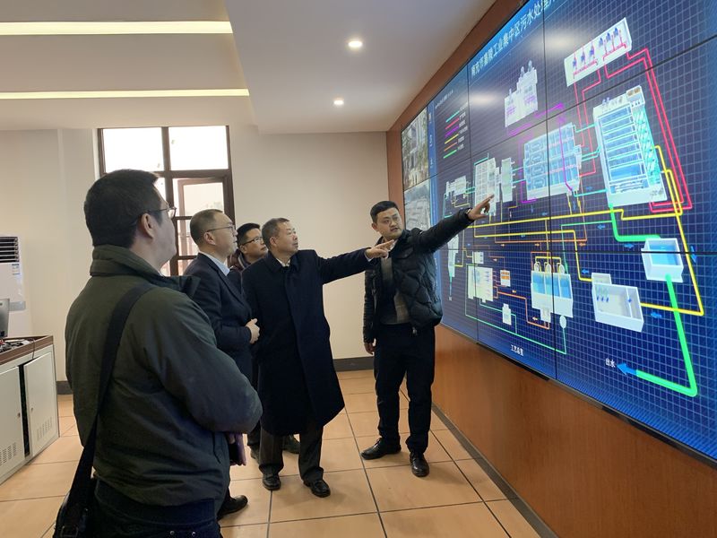 梁有国一行首先来到化验室,听取了化验人员对近段时期厂内进出水情况和各类主要污染物指标削减情况的工作汇报。随后来到中控室,查看了水厂中控系统实时在线监控,详细了解了污水处理整体工艺运行和各项参数实际情况。