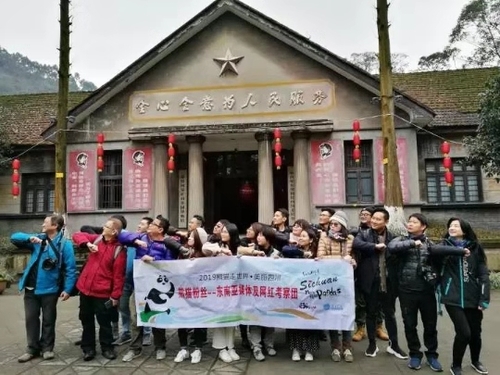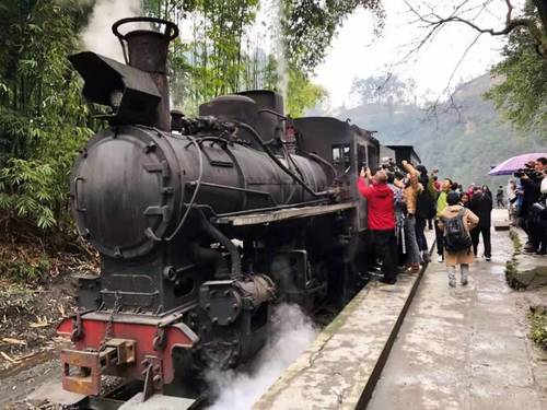 2月25日,“2019熊猫走世界•美丽四川”熊猫粉丝——东南亚媒体及网红粉丝团抵达走进嘉阳·桫椤湖旅游景区,体验绝版嘉阳蒸汽小火车神奇绚烂的穿越之旅。
