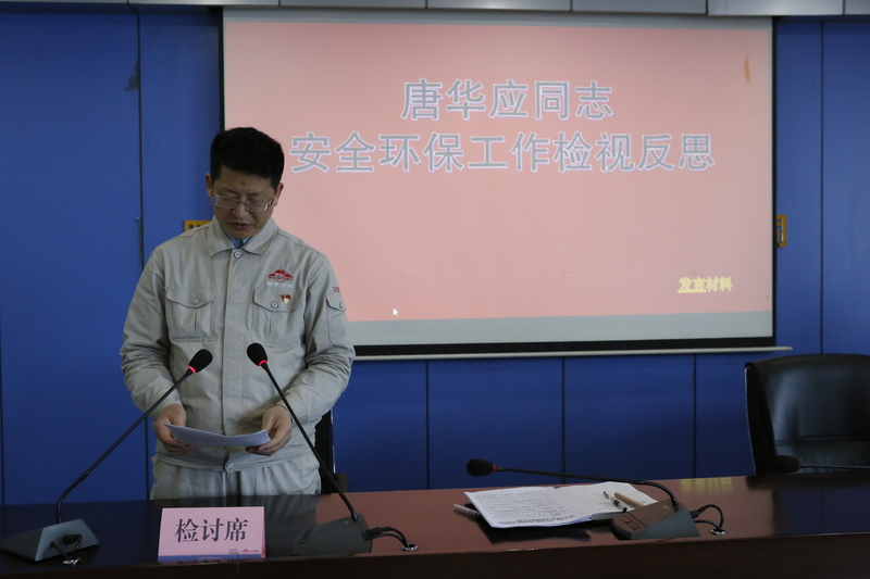 按照会议议程安排,唐华应率先从抓好自身安全环保思想态度言行的认识、自身在落实安全环保和岗位整洁与职业健康方面责任的不足和差距、对照标准严格整改问题和不足以及恳请监督务求取得整改实效四个方面进行了深刻反思检讨发言,并接受了与会人员的质询批评,唐华应表示接受大家的批评,并宣誓立即着手全面彻底整改并真诚接受全员监督整改。公司安环职健委副主任委员、委员也先后逐一作了反思检讨发言,并在发言结束后,接受公司安环职健委主任、副主任的质询点评,指出思想认识是否深刻、查找问题是否准确、整改措施是否到位等存在的问题。