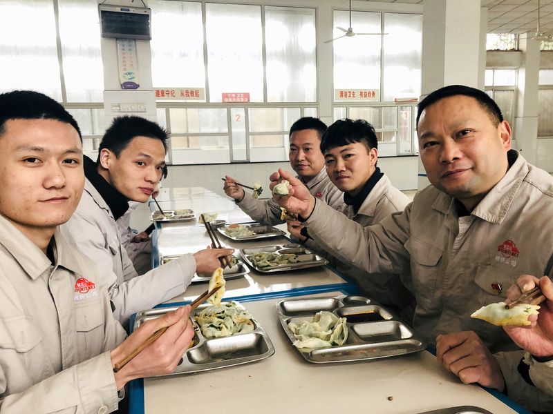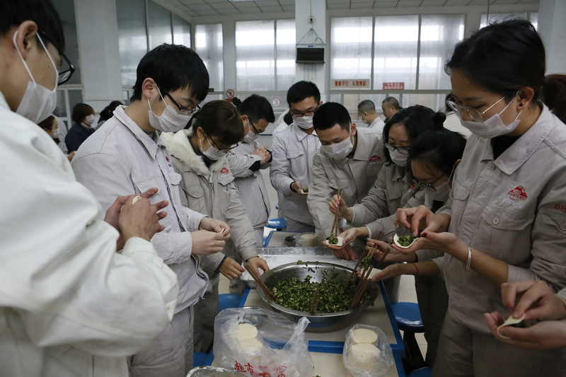 为保证当天中午公司上班职工的准点用餐,在职工食堂后勤人员的大力协助下,120名女职工以分工会为单位组成10个组,每组完成包500个饺子共5000多个饺子的工作量。在活动现场,女职工们充分展示了自己的心灵手巧,小小的饺子皮在女职工们的手中变幻出花朵型、麦穗型等各式各样的形状,新奇独到的包法让在场的女职工争相模仿。同步进行的还有包饺子个人比赛,在公司副总经理姜志川的一声令下,10名来自各分工会推选出的包饺子高手纷纷亮出绝活,一展身手;最引人注目的还是一支由公司新员工组成的队伍,稚嫩的面庞,生疏的动作,却掩不住初生牛犊不怕虎的劲头,边学边干,整个活动现场都沉浸在一片欢乐的海洋里。11时30分,前来用餐的一线职工们陆续到来,吃到香喷喷的饺子,都开心得笑了。