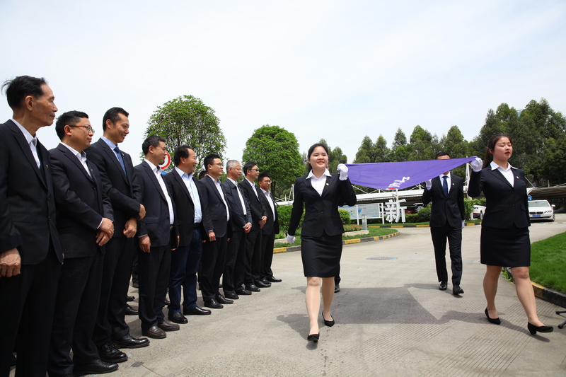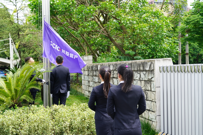随后,宏明电子举行了简短而庄重的升旗仪式,川投信产旗帜冉冉升起,飘扬在宏明电子龙泉厂区上空。