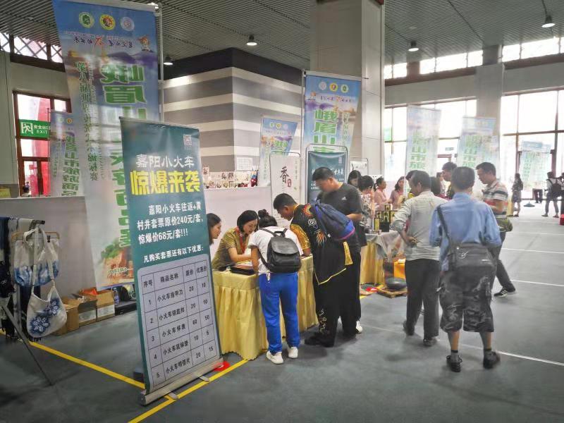 比赛期间,主办方致力于深挖本地特色文化,积极推出文旅新品牌。场馆大门口的巨屏上循环播放包括嘉阳小火车在内的乐山文旅精品景区的优美风光,进入旅游商品展厅,映入眼帘的就是展厅正中央的嘉阳小火车模型。为了在本届赛事上宣传好嘉阳•桫椤湖旅游景区,川投峨旅总经理助理吴家迪带队,组织工作人员值守展台,针对本届展会推出包含小火车、黄村井的旅游产品特价套餐、嘉阳小火车宣传画册、旅游纪念品等旅游商品。展会期间,嘉阳•桫椤湖旅游景区将会在数万人眼前精彩亮相。