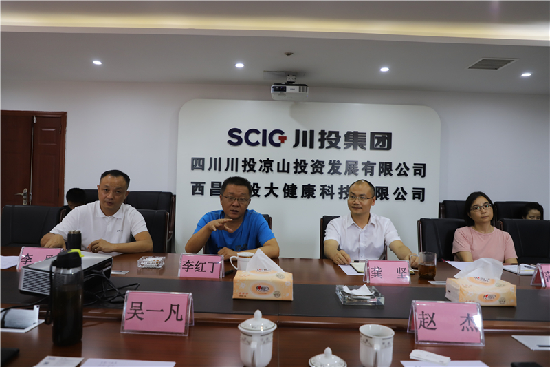 调研中,吴一凡董事长一行先后实地考察了川投西昌医院、健康学府、螺髻山等项目情况。随后,双方在西昌召开了座谈会,西昌大健康公司总经理李红丁,副总经理蒲军、李刚、龚坚,相关部门负责同志参加。