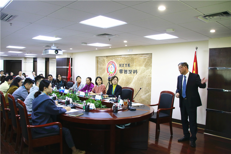 为增长公司员工口腔审美医学知识,加强口腔医学工作交流,近日,华西牙科组织开展口腔医学美学系列培训讲座。本次培训主题为“口腔医学美学基础”,由中华口腔医学会修复学专委会常委、四川省医学会口腔专业委员会候任主任委员、华西牙科专家委副主任郑立舸教授授课。