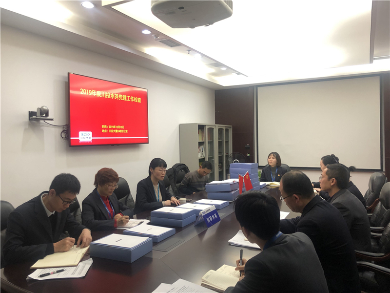 12月19日,集团公司党建工作考核组金晶一行5人到川投水务检查2019年党建工作。川投水务党委副书记、总经理邓锐,党委副书记、工会主席王小元,党群工作部相关同志陪同检查。