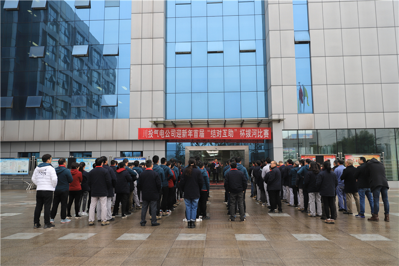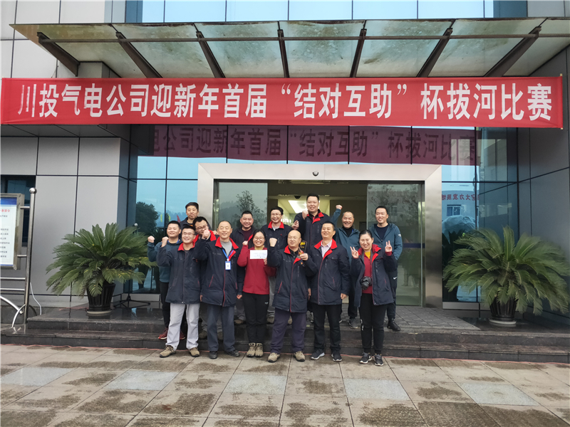 为迎接2020年新年的到来,丰富职工生活,增进友谊,强化团队精神,鼓舞职工斗志,加大职工幸福感和归属感,提高企业的凝聚力。12月31日下午,川投气电公司工会举行了一场别开生面迎新年首届“结对互助”杯拔河比赛。本次拔河比赛,采取抽签确定对手,“三局两胜”淘汰制。以“结对互助”为对子组队,公司领导班子也别加入到相应的“对子”中,共八个代表队参加了角逐。