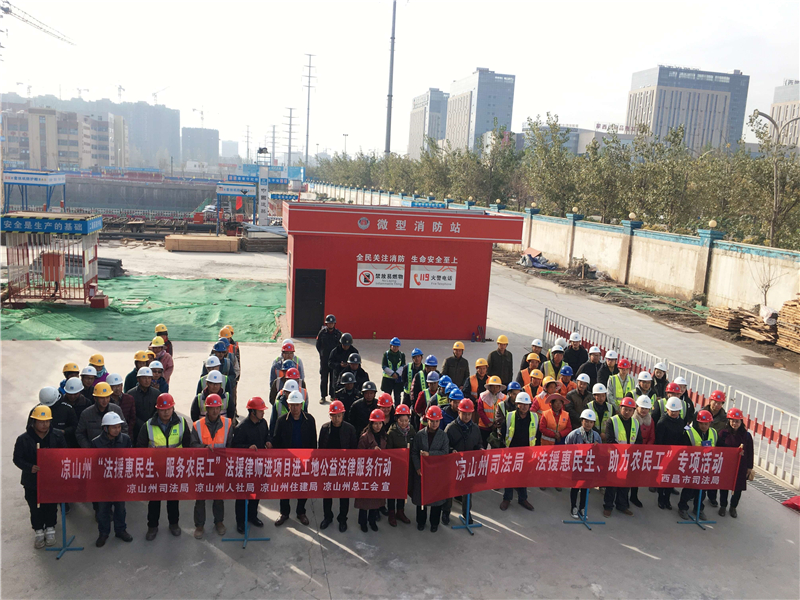 1月2日,凉山州司法局、凉山州人社局、凉山州住建局、凉山州总工会、西昌市司法局、凉山州仲裁委员会联合到川投西昌医院项目开展“法援惠民生、服务农民工”法援律师进项目、进工地公益法律服务行动。