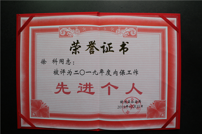 12月24日,乐山市犍为县公安局对2019年度内部治安保卫工作先进集体和个人进行表彰,嘉阳集团榜上有名,被授予2019年度内部治安保卫工作先进集体荣誉称号,保卫部徐科同志被评为2019年度内部治安保卫工作先进个人。