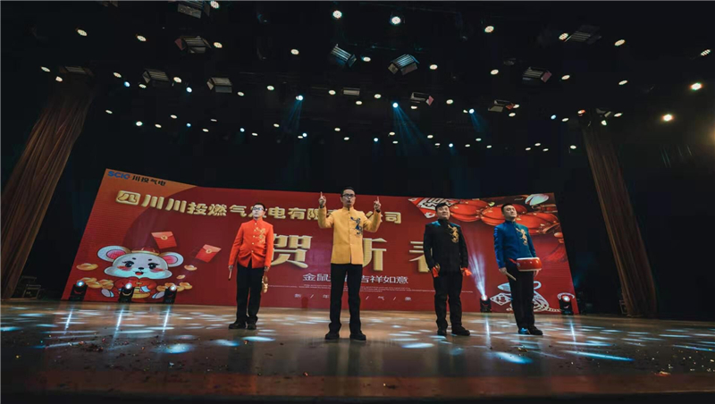本次晚会共有17家单位参加,分为18个节目,共计100多名演员登台表演,800余名观众观看。川投气电公司参演的小品《三句半之新春快乐》,借助新颖的表演工具,4名气电员工声情并茂的向大家讲述了公司的发展历程,精准施策合力攻坚,靶向发力扭亏脱困。同时,也抒发了对四城同创、建设成为省经济副中心的美好祝愿,得到了大家的一致赞赏。