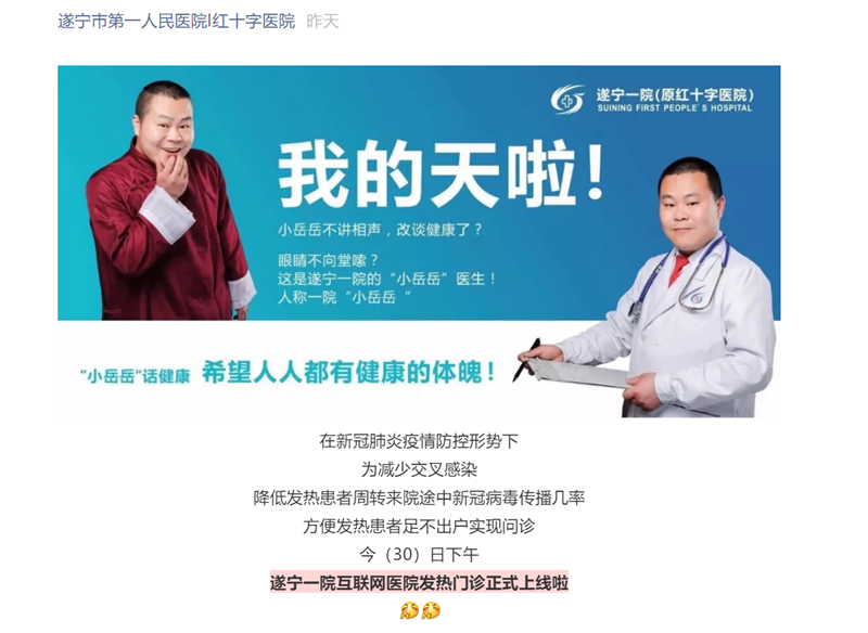 1月25日(初一),作为四川省首批新型冠状病毒肺炎市级定点医疗救治医院,遂宁市第一人民医院向川投信产所属天府智链公司提出,为缓解医院发热门诊就诊压力,希望帮助医院尽快开发互联网医院网上发热门诊功能。