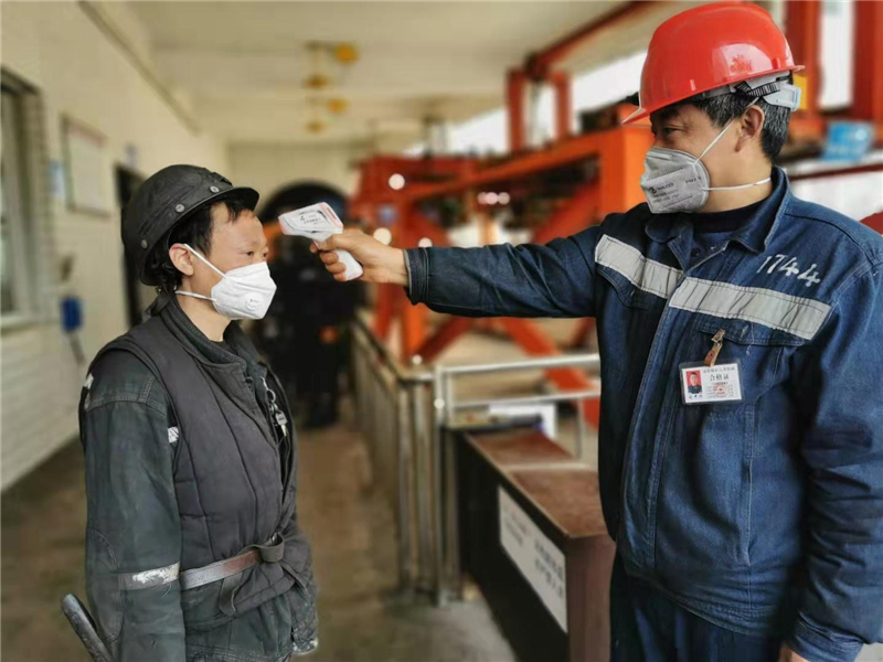 煤矿是嘉阳集团的主业,面临员工人数最多(近1500人)、员工构成复杂(绝大多数采掘工来自农村)、人员流动性较大等诸多疫情防控不利因素,虽然前期针对疫情变化顺势而动做了很多工作,但煤矿周全考虑复产会产生人员流动和聚集情况,全矿坚持继续严格执行2月2日出台的防疫方案和措施,防疫管理领导小组、疫情管理办公室和执行小组上下联动抓好细节工作,侧重要求各队各部门负责人认真询问职工及家属身体情况和有无接触疫区人员情况,每日进班职工在进班入口、各队入口和入井检身室检测体温“过三关”,做到三班无缝对接,确保职工体温正常、精神状态良好方可入井作业。开班第一周不组织职工集中安全学习,各队利用进班会和现场“传帮带”方式进行学习引导,进班、入井、下井要求职工全程佩戴口罩。