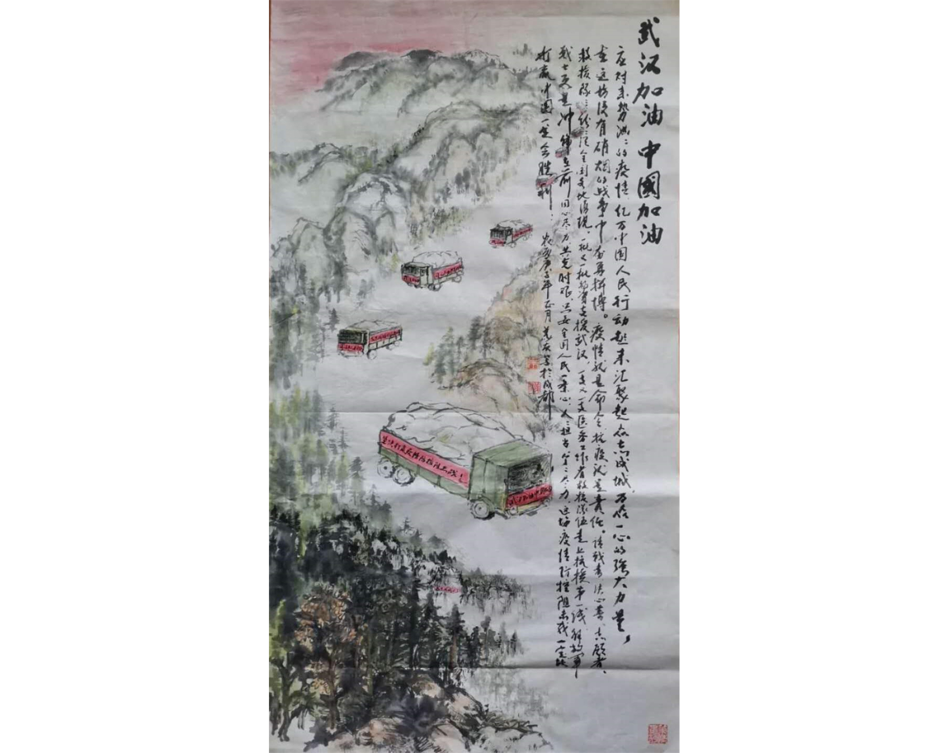 在这些作品的作者中,有八十多岁的宏明厂退休党员,也有职工家中五六岁的小朋友……他们或拿起画笔记录下医护人员、基层干部等“最美逆行者”感人瞬间,或挥毫绘就起全国各地倾力筹备物资支援武汉抗疫的“钢铁长城”,或用稚嫩的海报,嘶吼出全体炎黄子孙的心声:“武汉加油!中国加油!”