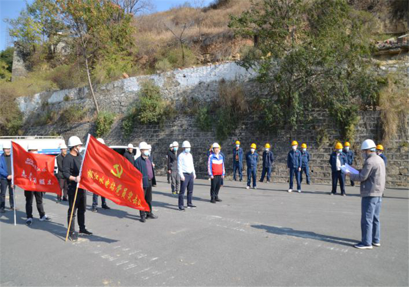 律回春晖渐,万象始更新。疫情斗不垮英雄的中华儿女,这一次,有一支忠诚奉献、忘我投入的党员突击队和志愿者服务队,始终坚守在春和景明的金沙江畔,奋斗在热闹有序的银江水电站工程建设现场。近日,就在银江水电站配套工程省道214江边临时路正式通车之际,川投能源所属攀水电公司党总支的全体党员同志们在项目现场开展了一次特殊的主题党日活动,用自己的拳拳赤子之心让鲜红的党旗在抗疫复工第一线高高飘扬。