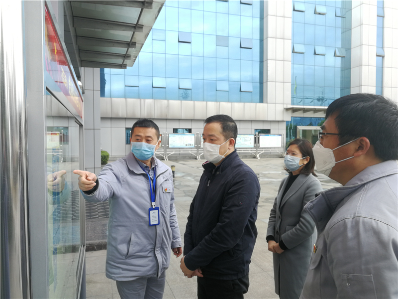 3月9日,达州市经信局副局长刘江、高新区副主任张虹一行带着市委市政府的温暖与关怀到川投气电公司调研疫情防控和复工复产工作。