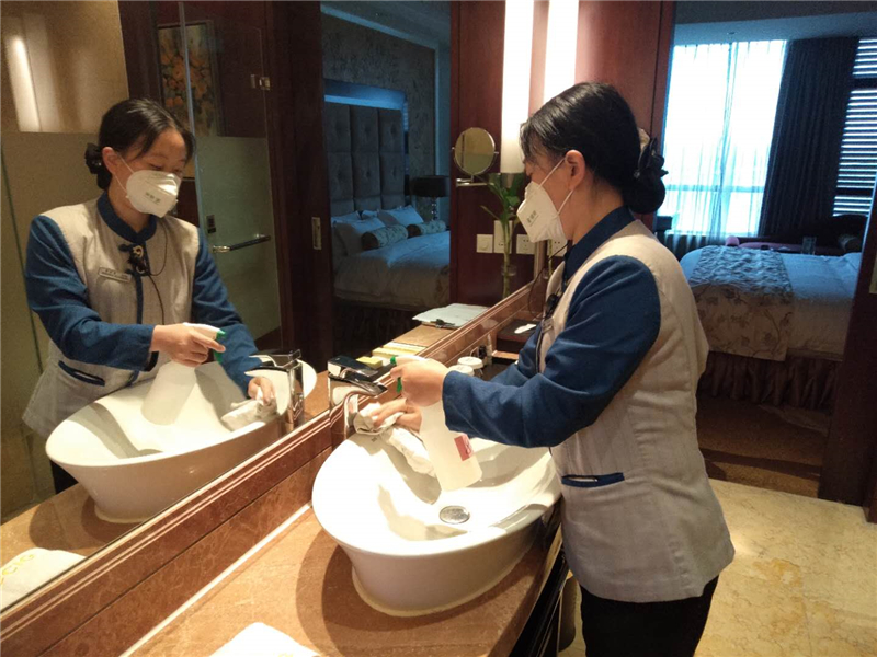 为全面深入开展此次活动,川投国网公司于3月13日开始专项安排,结合公司目前经营方案,规定了清洁卫生责任区域,明确了消毒杀菌的清洁卫生标准。此次活动中,重点围绕目前经营的酒店和场馆开展大扫除和消毒工作,酒店方面主要对酒店大厅区域座椅设施、餐饮器具、会议室地毯、各大特色包间、楼层通道、客房房间、服务中心办公区域、洗衣房、工作间进行了地清扫和消毒,对门把手、水龙头等点位进行了仔细地清扫;场馆方面,主要采用了冲洗、清扫、消毒等方式,对综合馆办公区及前台、游泳池周边、羽毛球场地、室外网球场等区域进行了全面的清洁工作。