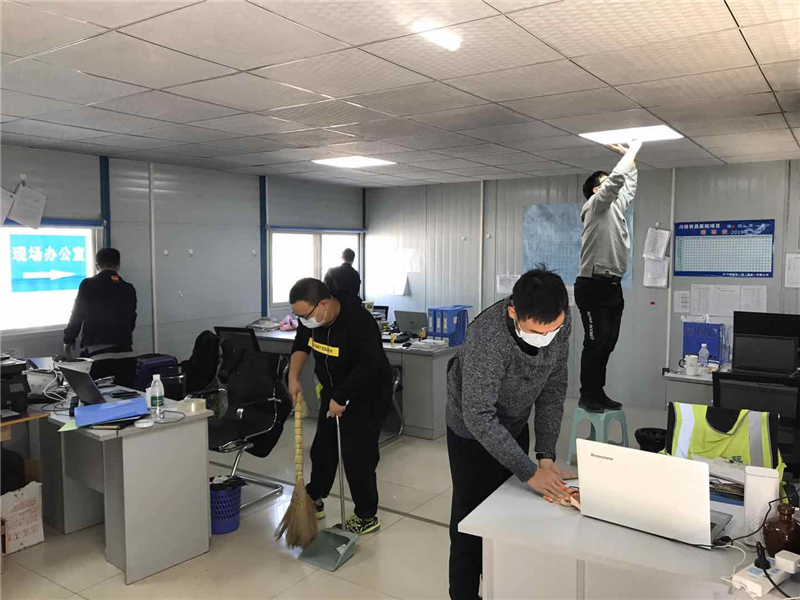 大家对工地宿舍、食堂、办公区域等开展了清扫工作,配合当前疫情防控每日消毒,通过“卫生大扫除”活动,有效组织公司员工、参建单位从身边环境着手,推动养成文明习惯,净化绿化美化公共空间,消除卫生死角和垃圾杂物,保持良好生活习惯。同时,公司积极倡导爱护环境、合理膳食、适度运动的生活理念,引导员工和参见单位工人养成勤洗手、多通风、不滥食野生动物的健康生活方式,全面提升防控意识和自我防护能力。