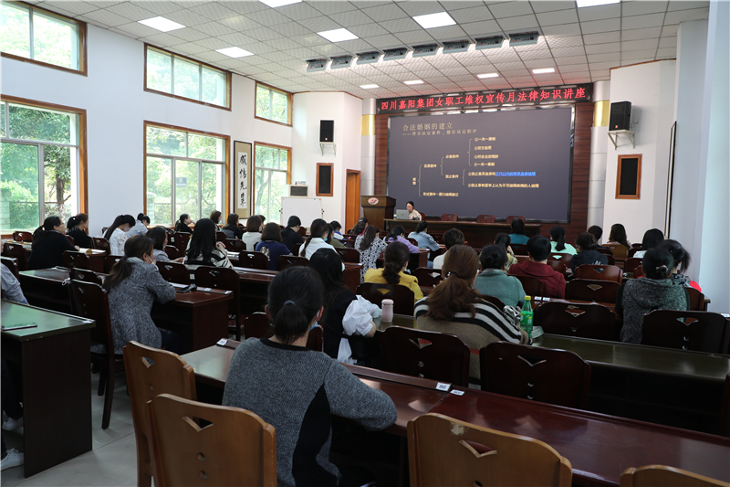 3月24日下午,由嘉阳集团公司工会、女职工委员会组织开展的“女职工维权宣传月法律知识讲座”在集团公司办公楼底楼会议室举行,来自各单位的女工代表50余人聆听了讲座。