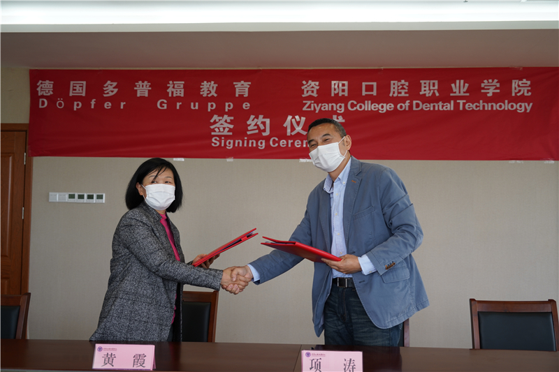 4月15日,资阳口腔职业学院与德国多普福教育集团合作办学签约仪式在行政楼四楼会议室举行。多普福教育集团中国区首席代表黄霞与学院院长项涛代表双方签署《合作协议》,学院理事长、临时党委书记张中伟主持会议,学院全体领导班子出席仪式。