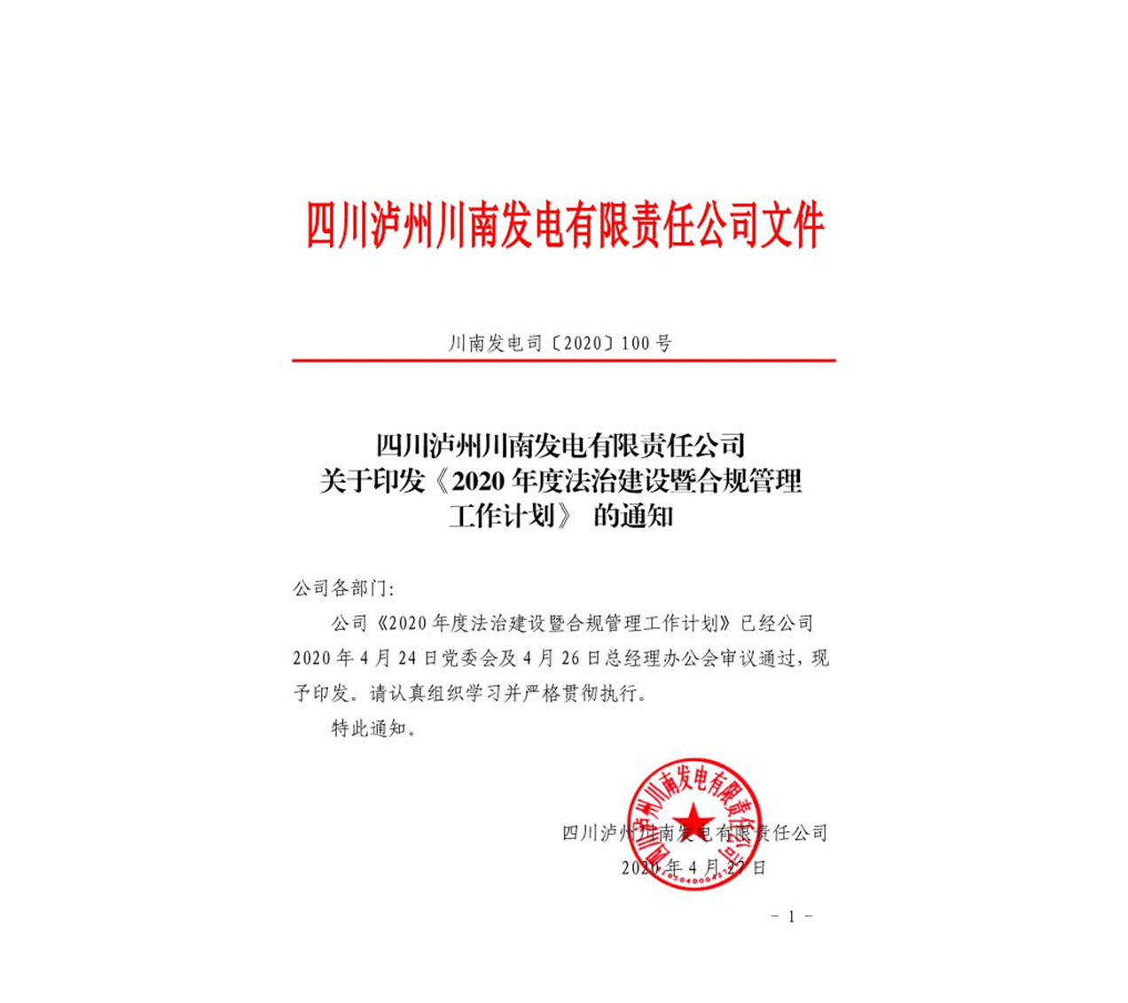 为深入贯彻落实米兰(中国)战略规划,进一步加强公司法治建设和合规管理工作,4月27日,川南发电印发了《2020年度法治建设暨合规管理工作计划》,对2020年的法治建设和合规管理工作进行详细安排。