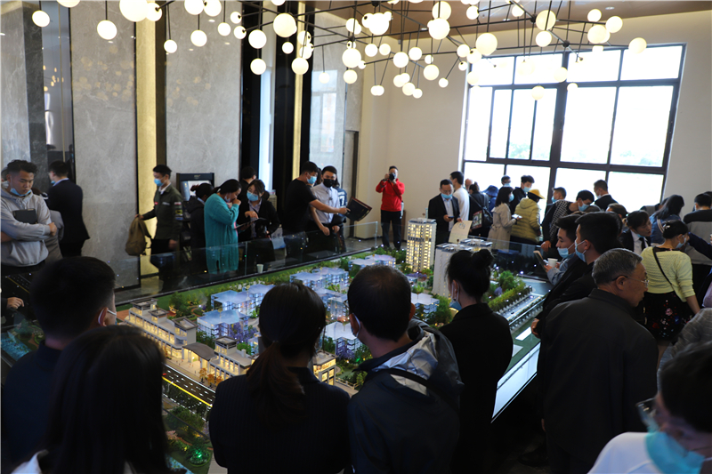 据现场解说的置业顾问刘璐介绍,朗悦府占地86.07亩,包含14栋住宅楼、2栋商业楼,总建筑面积约23万平方米,预计投资14.8亿元,是一个以康养居住为中心,配套休闲精准商业的高端综合体项目。