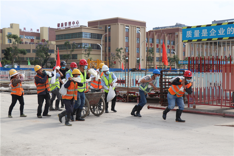 目前,西昌市已进入雨季,为进一步增强现场人员的防汛意识,切实提高雨季防汛应急处置能力,锻炼应急抢险队伍。5月18日下午,川投西昌医院项目开展防汛应急演练,公司工程管理小组相关人员与项目总承包单位管理人员、项目各劳务分包单位人员、现场作业人员共计50余人参加演练。