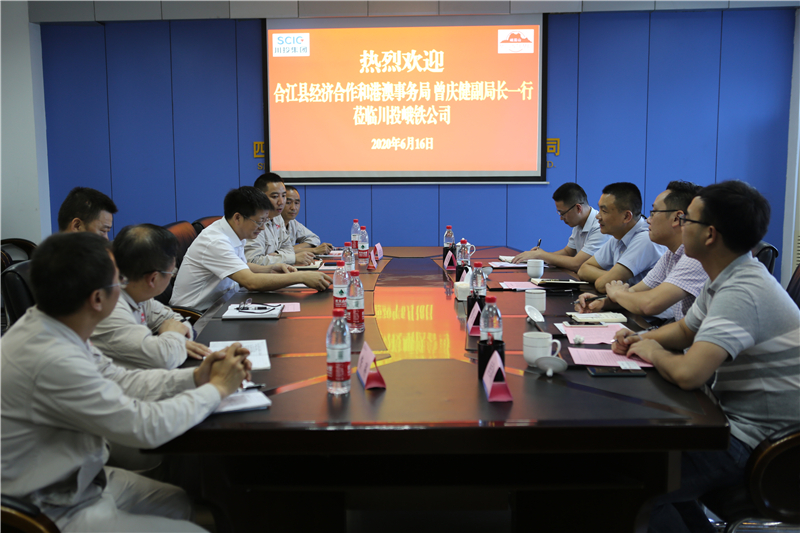 6月16日,合江县经济合作和港澳事务局副局长曾庆健一行4人到访川投峨铁公司,川投峨铁公司党委书记、董事长、总经理唐华应,党委副书记、副总经理陈新龙,副总经理姜志川及生产控制中心、企划发展处等相关部门负责人在908会议室热情接待了到访客人一行。