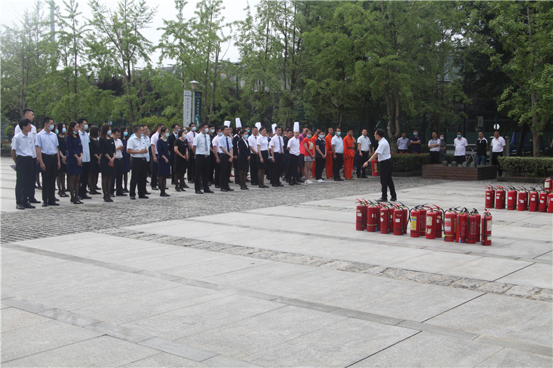 随后,在疏散集合地点银杏广场举行了灭火器实操演练。参演员工轮番拿起灭火器,对准着火点,迅速扑灭火焰。整个演练过程组织有序、分工到位、有条不紊。