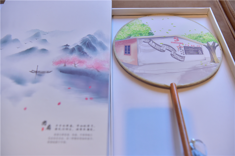 团扇面刻画的是“宏明记忆”党性教育示范基地的剪影,展现了宏明电子从建厂到股份制改革,从国有到民营控股再回到国有控股,为国防工业发展做出的突出贡献,以及背后的感人故事。