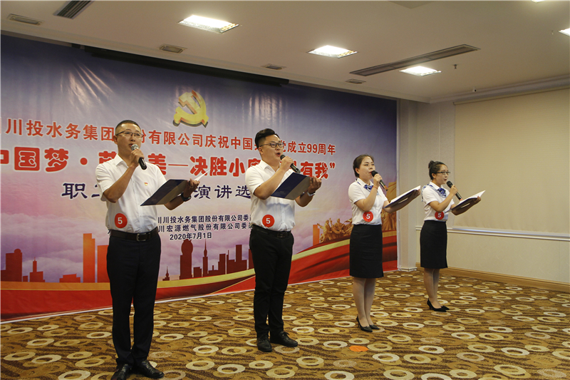 7月1日下午,川投水务党委在宏源公司11楼大会议举行了“中国梦•劳动美——决胜小康奋斗有我”川投水务集团职工诵读和演讲选拔赛。台上选手饱含深情,激情飞扬,台下观众掌声雷动,意犹未尽。经过激烈地角逐,川投水务荣县气司参赛选手龚婷筠荣获演讲比赛一等奖,川投水务万源水司、宏源气司、射洪水司分别荣获诵读比赛一、二、三等奖。