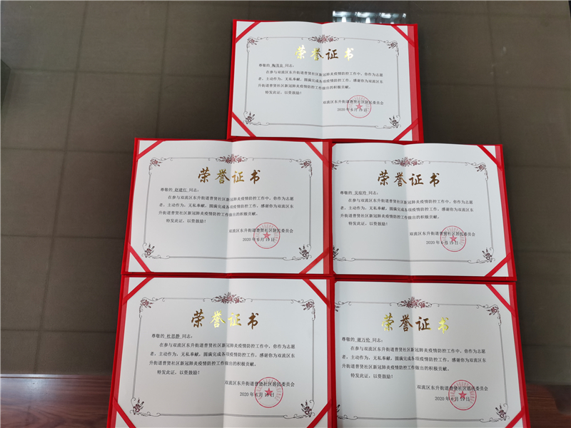 疫情防控期间,社区专门派驻了工作人员驻小区进行防控指导,通过东升街办和驻项目工作人员的考察举荐和实际工作表现,川网国际花园物业服务中心5名员工获得了表彰。近日,普贤社区纪委书记和工会主席专门到项目进行了通报,并为表现突出的同志颁发了荣誉证书,激励大家继续为属地做好疫情防控工作贡献自己的一份力量。项目总经理陶茂良携管理人员进行了接待和工作汇报,并对属地主管部门的肯定和指导表示感谢,表示将继续配合属地主管部门和社区做好各项疫情防控工作。