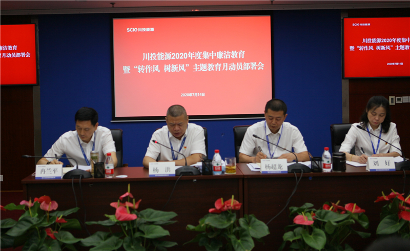 7月14日,川投能源党委组织召开了2020年度集中廉洁教育暨“转作风、树新风”主题教育月动员部署会。公司党委书记、副董事长、总经理杨洪出席会议并讲话,公司党委副书记、工会主席杨超龙主持会议。