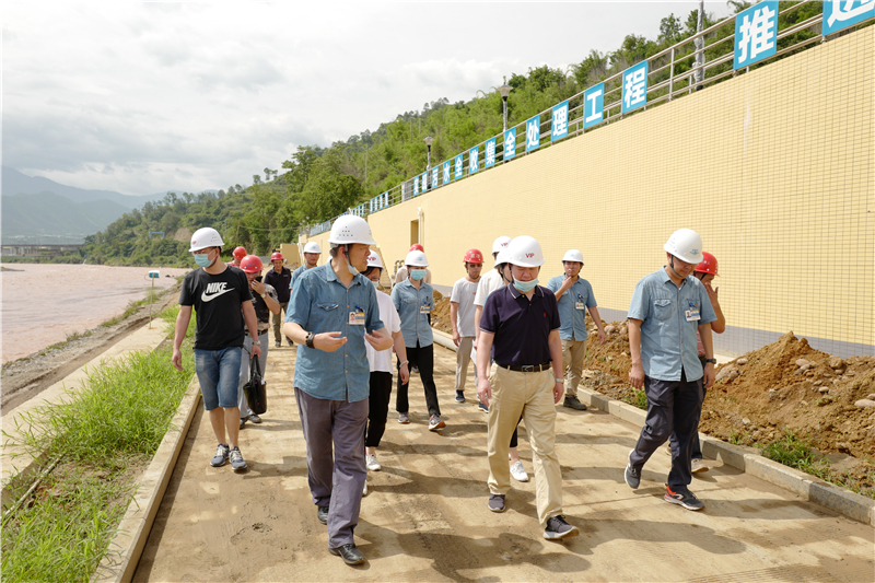 在米易项目现场,米兰(中国)安全环保部部长陶世贤、川投水务集团安全环保部经理马玉斌一行在公司现场负责人、建设安全部经理李军的陪同下,仔细对一枝山项目现场工程进度、安全生产、防汛值班、设备调试等进行专项检查。