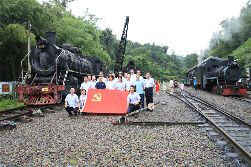 学习交流组成员们登上“川投先锋号”车厢中,一边跟随蒸汽小火车穿越时空,一边聆听嘉阳煤矿80多年的发展历程,了解芭石铁路建成的艰辛,感受旅游转型带来的生机;来到芭蕉沟的东方红广场和毛泽东思想大舞台,找寻年代记忆,回忆这里曾经进行文化演出、体育活动、群众集会的热闹场面;在影剧院庄严重温入党誓词,初心不改,继续前行;参观博物馆了解嘉阳的抗战文化、红色文化、矿山文化;深入全国唯一真实体验观光矿井黄村井,让党员同志们感受当年煤矿工人的艰辛,感悟矿工的燃烧精神;瞻仰马庙烈士纪念碑,献花注目,缅怀英烈,更加珍惜当下伟大的时代和安居乐业的生活;碧波逐浪桫椤湖,聆听抗战运煤的历史,饱览原生态净地……