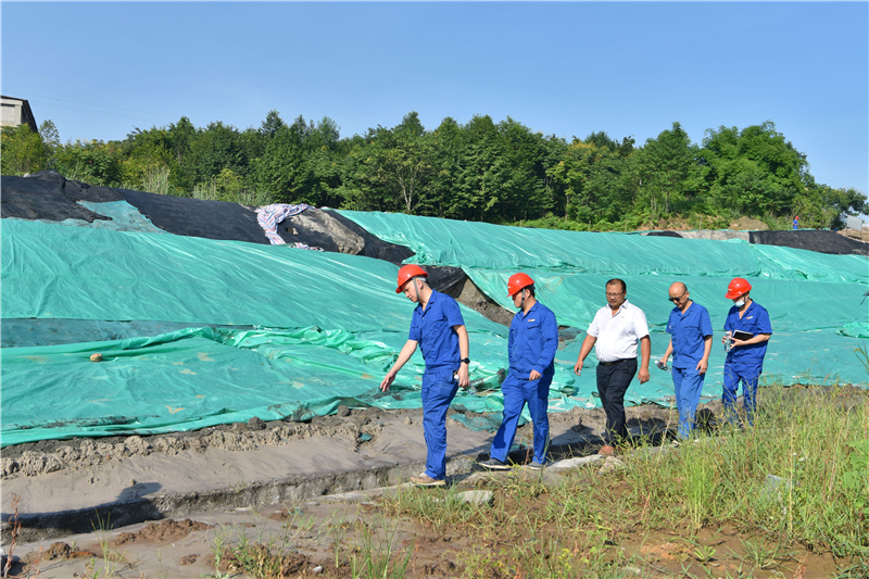 陈总实地检查了公司石膏堆放区整形、临时覆盖区覆盖系统、循环堆放区及配套管线修建、周边排水沟开挖等工程完成情况。在新建的渗滤液收集池旁,陈总仔细查看储水池结构、围栏及水位情况等;在石膏堆放区周边的截水沟工程现场,陈总详细查看了截水沟的截水效果。