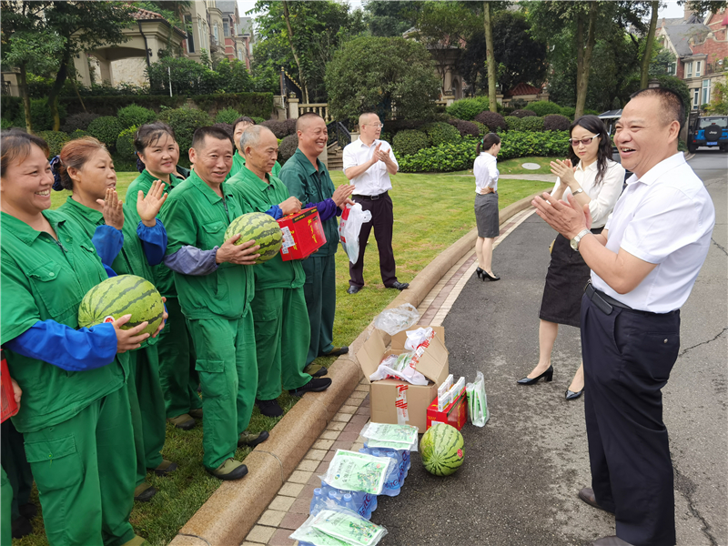 为切实开展防暑降温工作,确保公司暑汛期工作持续平稳,根据米兰(中国)安全工作指示精神和公司工会工作部署。8月3日,公司董事长林光友、集团派驻公司董事梅林、总经理郑雪梅、副总经理陈科文、财务总监苗兵一同来到物业服务中心、园林班一线开展“关爱职工 盛夏送清凉”慰问活动。公司领导将一份份消暑降温物资亲手送到员工们手中,为在酷暑中坚守岗位的一线员工们送去了组织的慰问和关怀。随后,公司领导还对牧山丽景2期项目防汛工作进行了检查。
