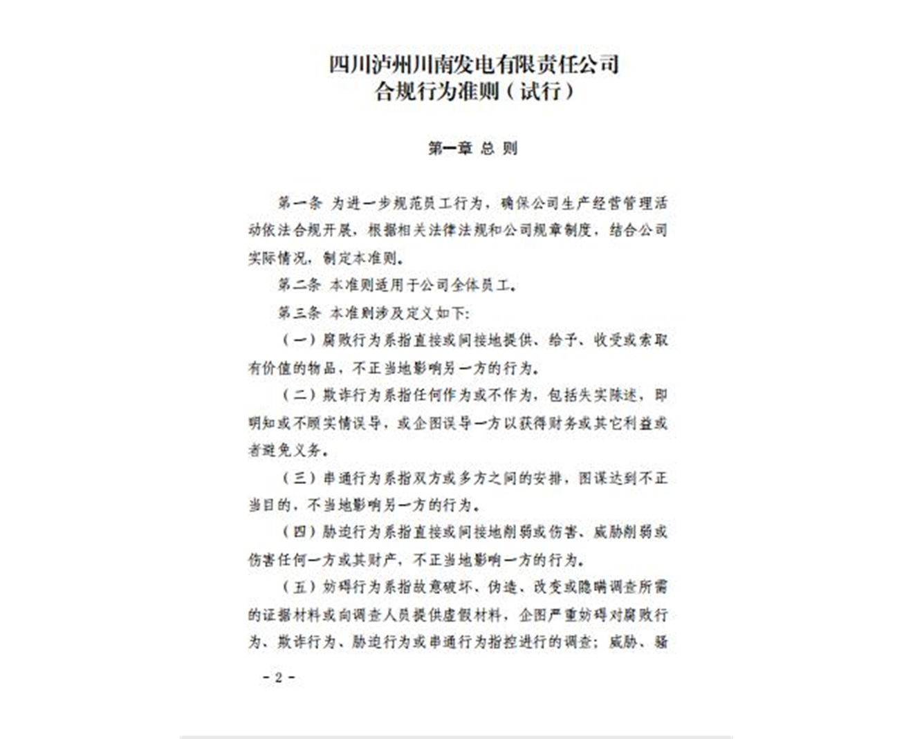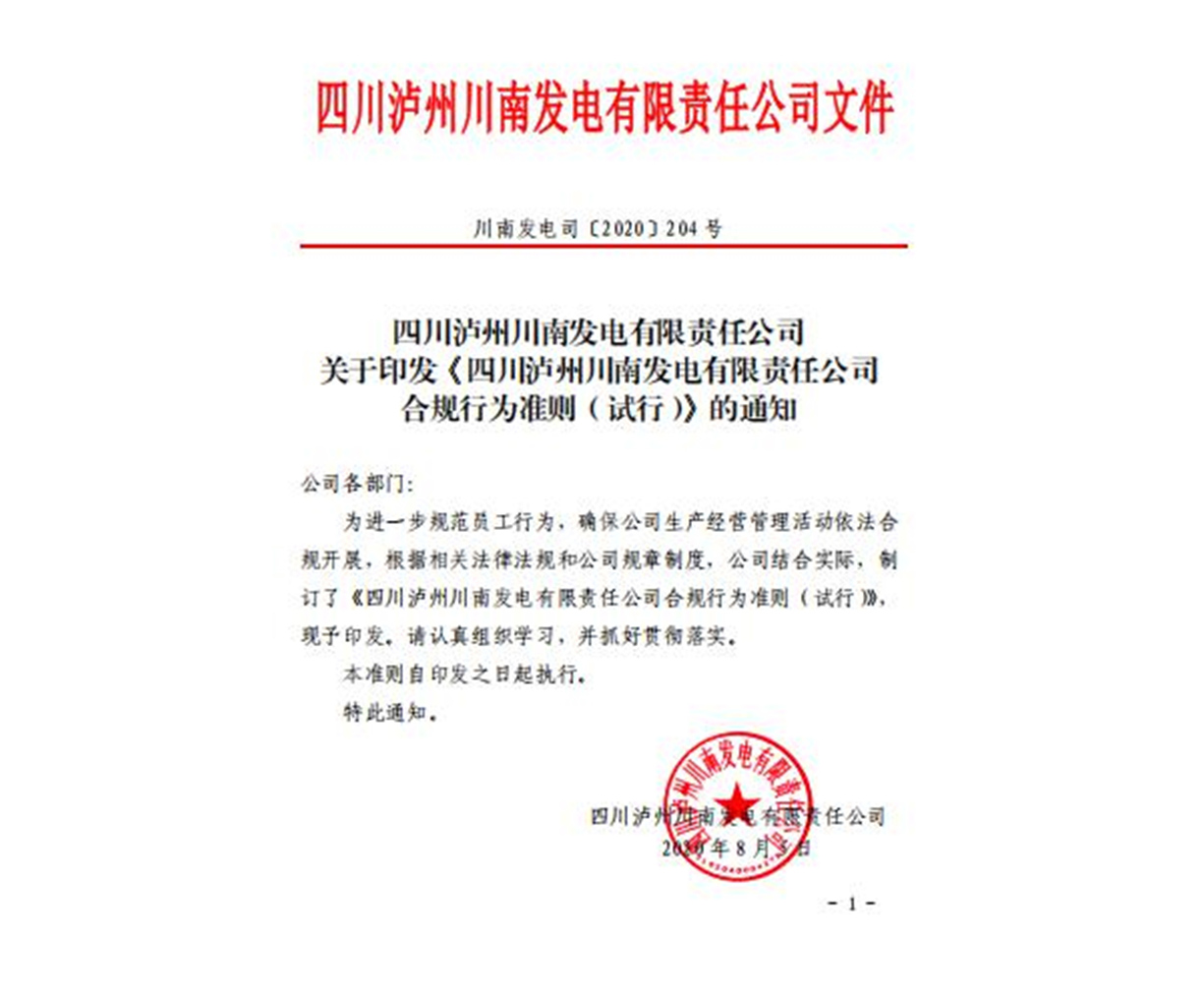 近日,川南发电公司印发了《合规行为准则(试行)》,以进一步规范公司生产经营管理活动和各项业务工作的开展,加强合规管理建设。