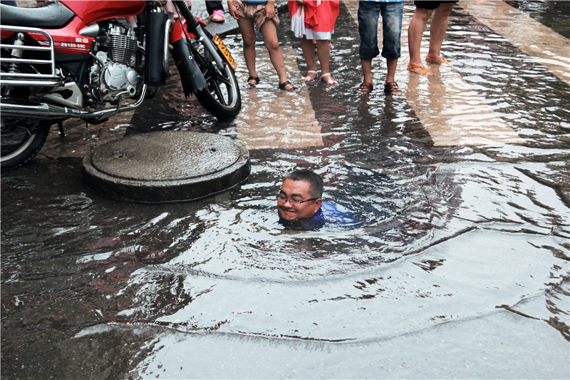 近日来,一则短视频在网上广泛流传并引发热议。视频中的城市路面因消防栓损坏导致路面大量积水,一名身着蓝色工作服的男子在没有借助任何辅助设备的情况下反复通过闭气方式潜入阀门井,并最终成功关闭水下的阀门,完成排险。包括人民网、中国共青团网、工人日报、经济日报、法治日报、成都商报、抖音、梨视频在内的多家主流媒体均对此事件进行了转发报道,目前该视频浏览、点击量已达百万,视频中的男子赢得了网友们的一致好评,也成了名副其实的“网红”,网友们亲切的称呼其为“开关侠”。他便是川投水务大英水司维修抢险队队员魏巍。