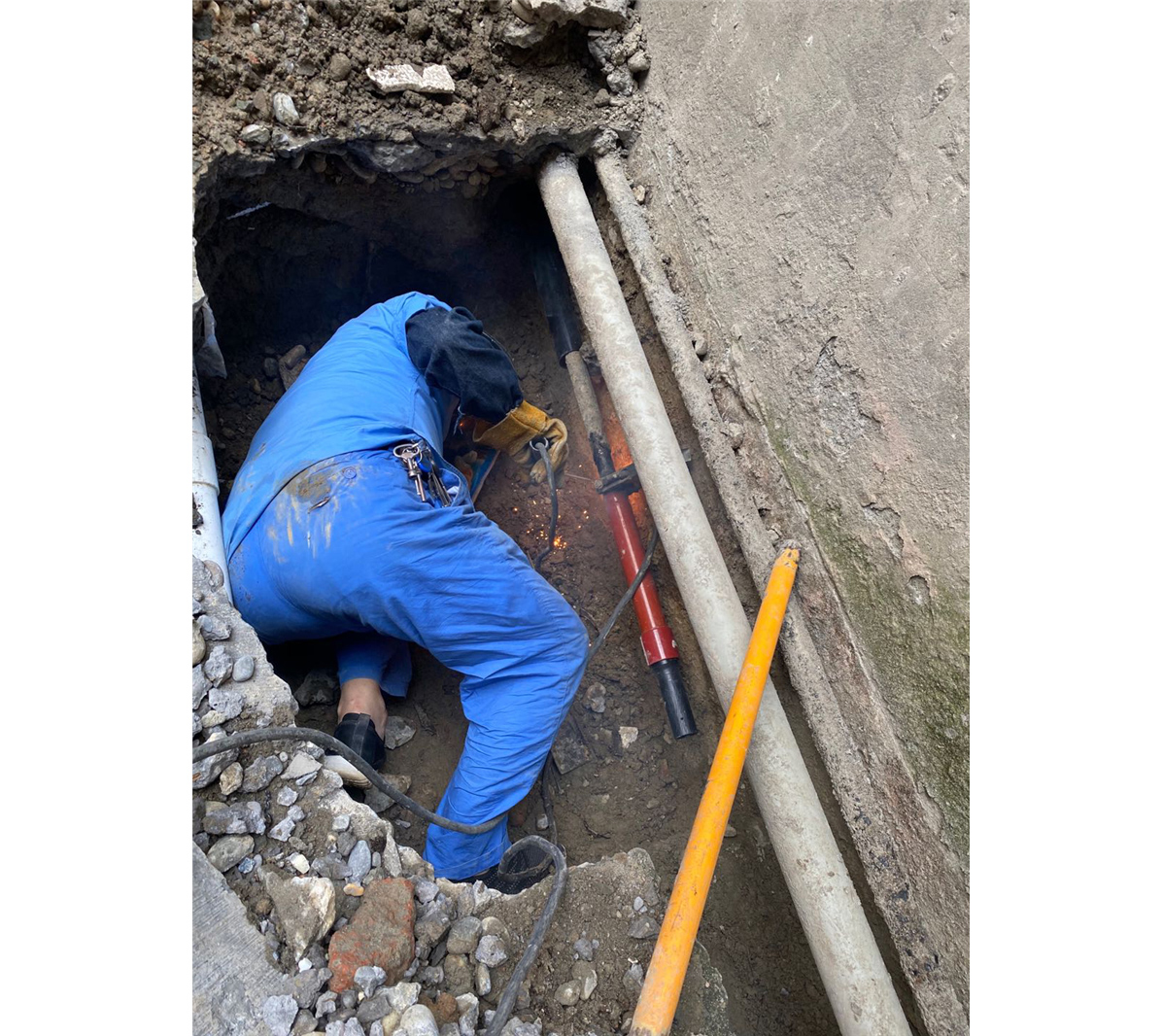 金家小垭村由于强降雨导致山体滑波将燃气管道损坏,接到险情后陈辉同志迅速带领相关人员前往小垭村,由于乡镇道路窄,路又滑,车子不能开到现场,抢险队员只有抬着沉重的抢险材料和设备,步行一公里前往现场,雨天路滑,又是泥巴路,可谓是举步维艰,到达现场,抢险队员立即投入到工作中清理塌方处泥土,寻找被砸管道接头,衣服分不清是汗水还是雨水,整个过程没有人叫累喊苦,经过两个多小时紧张工作,顺利排除了险情,保证了沿线1000多户天然气用户的正常用气。