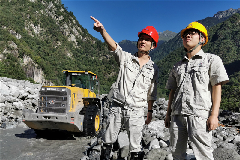8月24日天刚亮,水工部专业人员在对作业工人进行了安全技术交底;确认周围环境没有安全隐患后,通知道路维护单位大型工程机械进场,电站现场主干道公路路面泥石流清淤开挖启动。由于抢险现场仍然有降雨,一方面抢险工作紧张有序开展;另一方面水工部专人持续监视龚家沟河道来水,预防河水忽然上涨或者中断,确保作业人员人身安全。