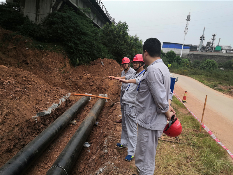 由于达州新机场大道建设及瓮福磷石膏项目建设,需要对公司厂外取水管线瓮福铁路桥下及瓮福磷石膏项目管段进行迁改,为保障厂内生产取水安全,落实安全责任,9月1日下午,川投气电公司党委书记、董事长姚欣带队实地查看厂外取水管线迁改工程实况。