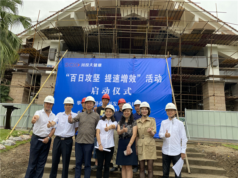 在攀枝花市和盐边县两级政府关心指导下,川投大健康公司红格温泉假日酒店、温泉会展中心提档升级和“春光里”项目开发进入实质推动阶段。2020年9月11日,川投大健康公司于攀枝花盐边县红格镇召开“百日攻坚,提速增效”誓师动员大会,会议由公司董事长、总经理朱莉主持。